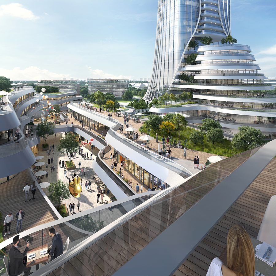 A unique multi-dimensional landscape, where plazas and green precincts are prominent. Wander around the plazas, gardens and paths. Enjoy the limitless view from the terraces and roof gardens. The perfect integration of contemporary architecture and nature make you feel like stepping into an urban oasis.